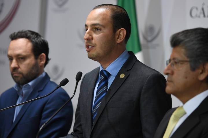 En conferencia de prensa conjunta de los coordinadores del PAN, Marko Cortés; PRD, Francisco Martí...