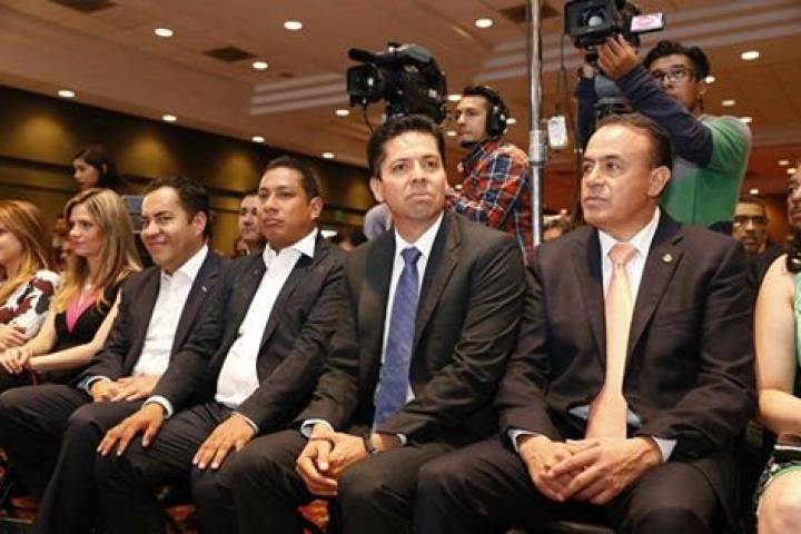 El presidente del Comité Directivo Estatal del PRI, el diputado VÃctor Manuel Silva Tejeda y la se...