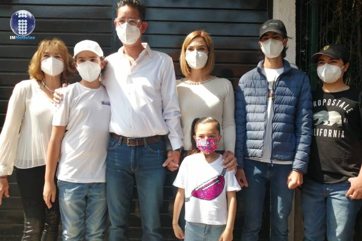Acompañado por su familia, el candidato a gobernador por la Coalición Juntos Haremos Historia, Al...