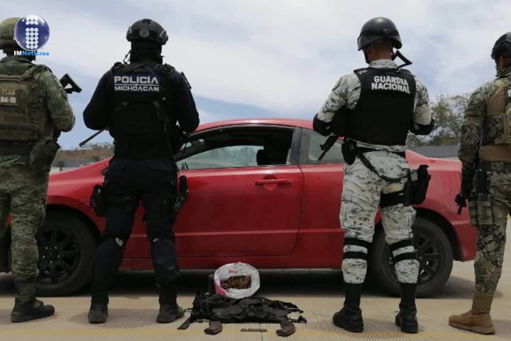 Aseguran SSP, Semar, Sedena y GN vehículo con reporte de robo, droga y equipo táctico