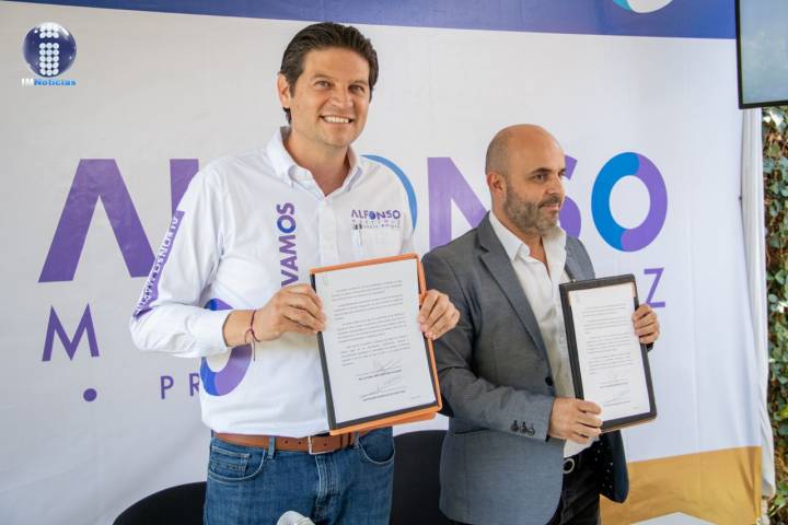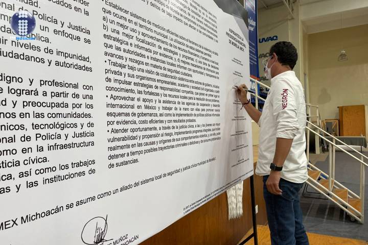 El candidato a alcalde de Morelia, Alfonso Martínez Alcázar firmó una serie de compromisos en mat...