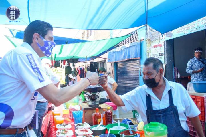 Con el folclore que caracteriza al mercado del Auditorio Municipal, comerciantes recibieron al candi...