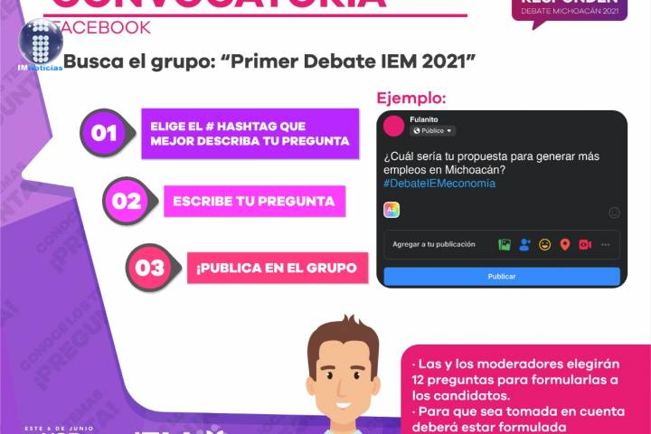 Convoca IEM a la ciudadanía a participar en el primer debate a la gubernatura del estado
