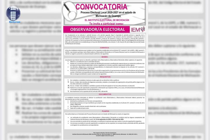 Invita INE e IEM a participar como observadora u observado electoral