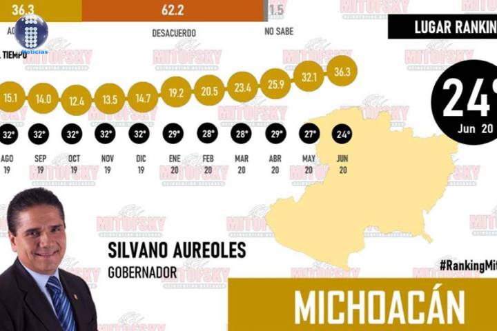 El gobernador de Michoacán, Silvano Aureoles Conejo, es el que mayor crecimiento reportó en cuan...