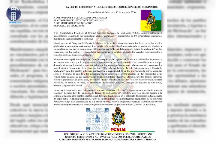 Consejo Indígena impugnará la nueva Ley de Educación de Michoacán