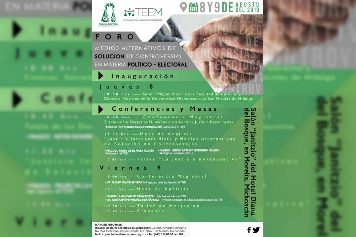 TEPJF y TEEM realizarán Foro "Medios Alternativos de Solución de Controversias en Materia Político-Electoral"