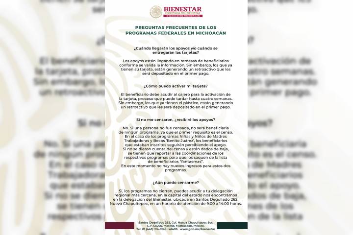 Continúa con normalidad entrega de apoyos de programas federales en Michoacán