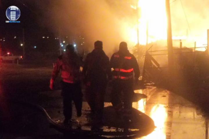 Los integrantes de Bomberos Morelia combatieron un gran incendio de una bodega de madera y plásti...