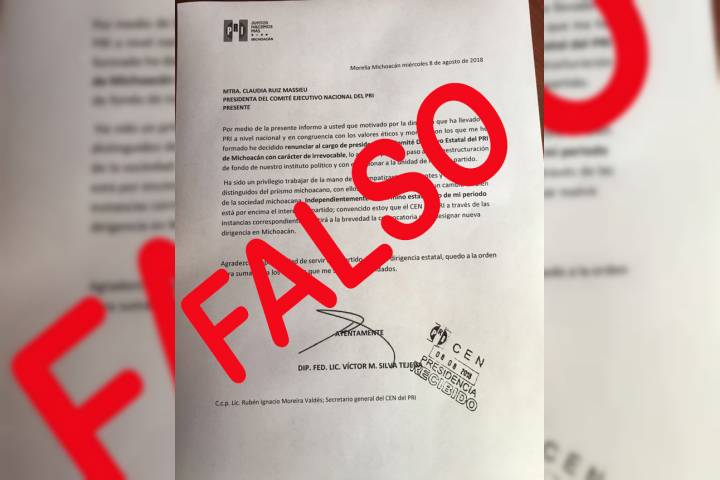 Apócrifo documento de renuncia de Víctor Silva al CDE del PRI