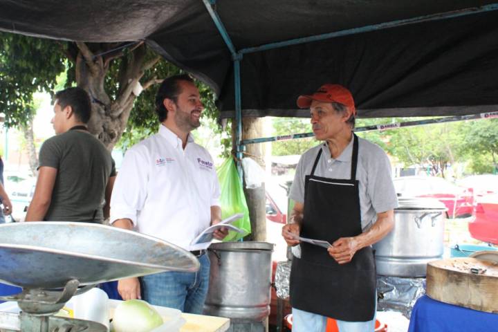 Saluda Fausto Vallejo Mora a comerciantes del tianguis de la Avenida Pedregal