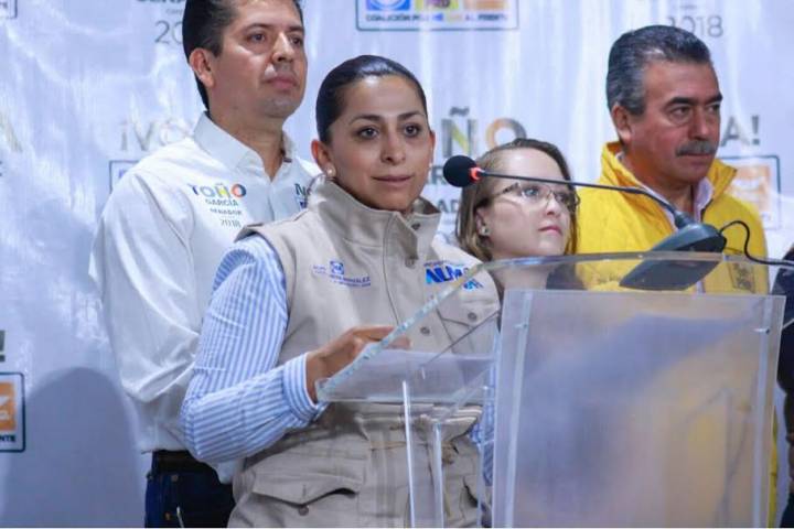 La candidata al Senado de la República de la coalición "Por Michoacán al Frente", Alma Mireya G...