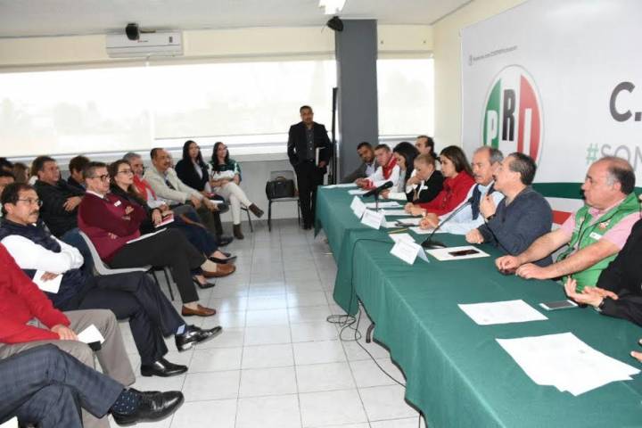 En rueda de prensa, el presidente del Comité Ejecutivo Estatal del Partido de la Revolución Democ...