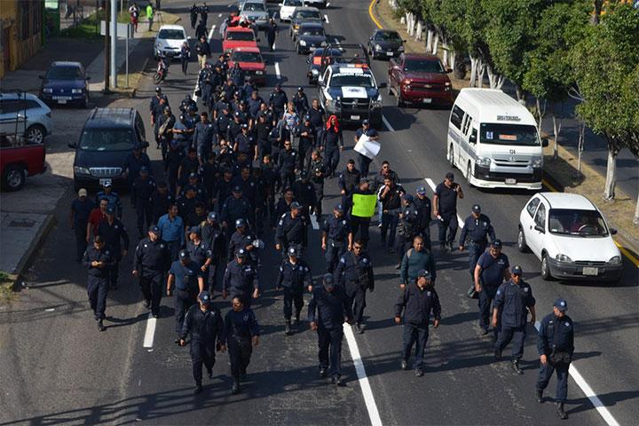 Policías de la Secretaría de Seguridad Pública (SSP) salieron a marchar ante la falta de pagos e ...