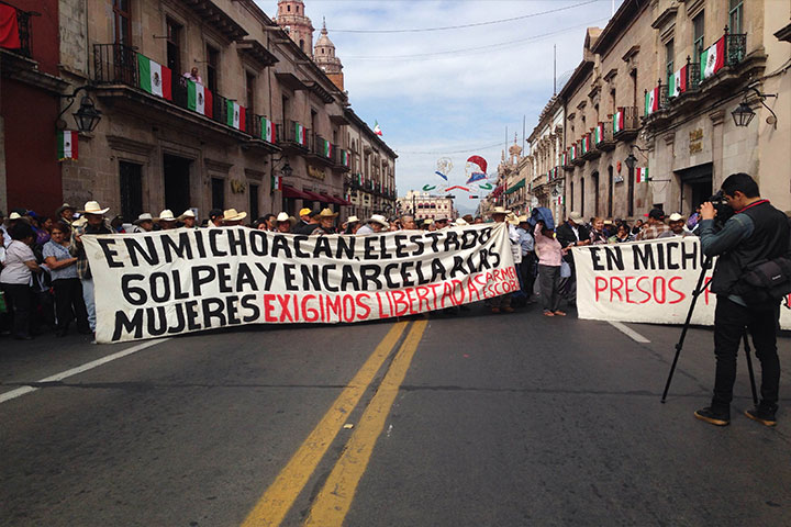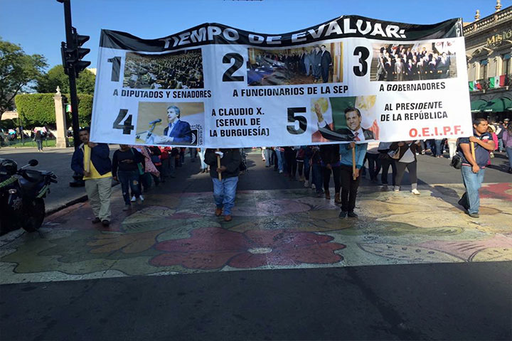 Agremiados a la sección XVIII de la Coordinadora Nacional de Trabajadores de la Educación (CNTE) s...