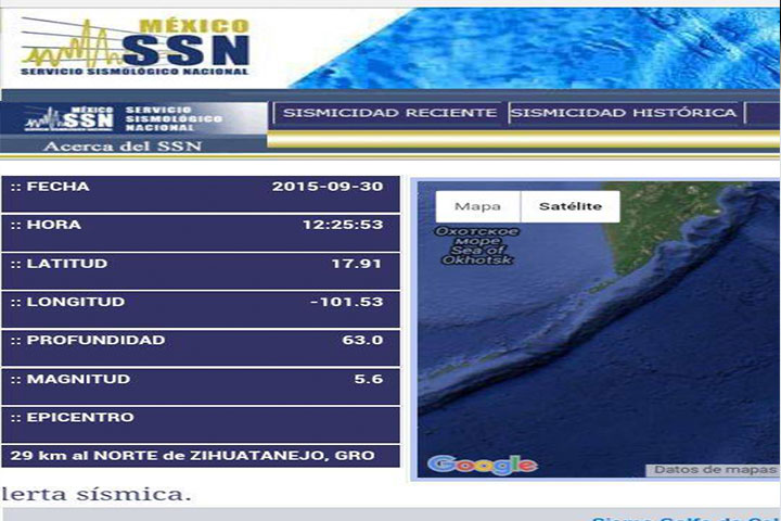 Ocurre sismo de 5.2 grados al norte de Zihuatanejo