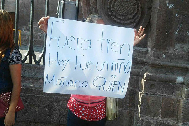 Exigen la salida del tren frente a Palacio de Gobierno
