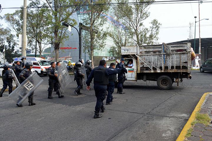 Bajo la amenaza de ser retirados por las fuerzas de seguridad, personal del C4 se manifiesta afuera ...
