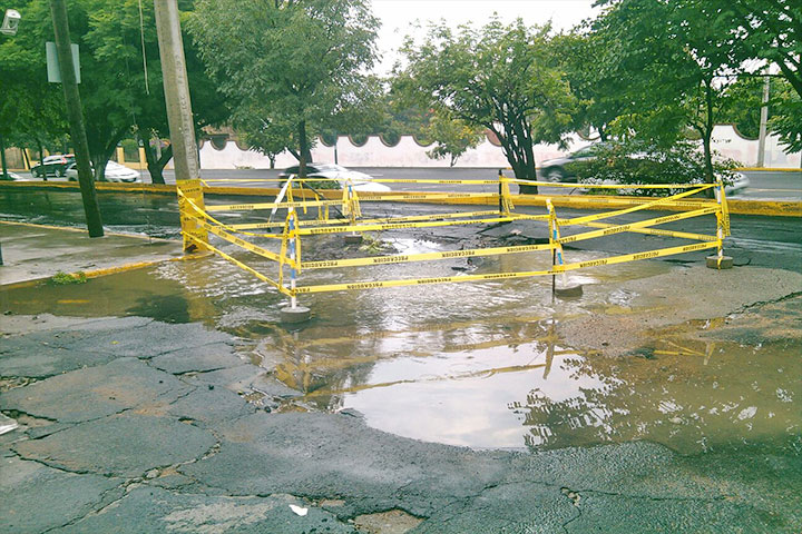 Atiende OOAPAS hundimiento en carril Lateral de Camelinas