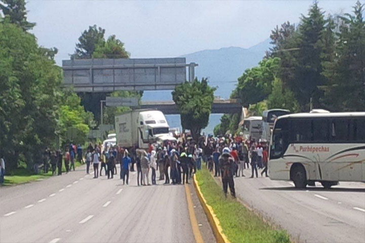 Estudiantes normalistas retiraron el bloqueo que tenían tanto en el crucero Pátzcuaro-Uruapan como...