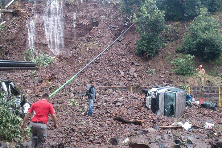 Dos lesionados en deslave en la carretera Uruapan - Paracho