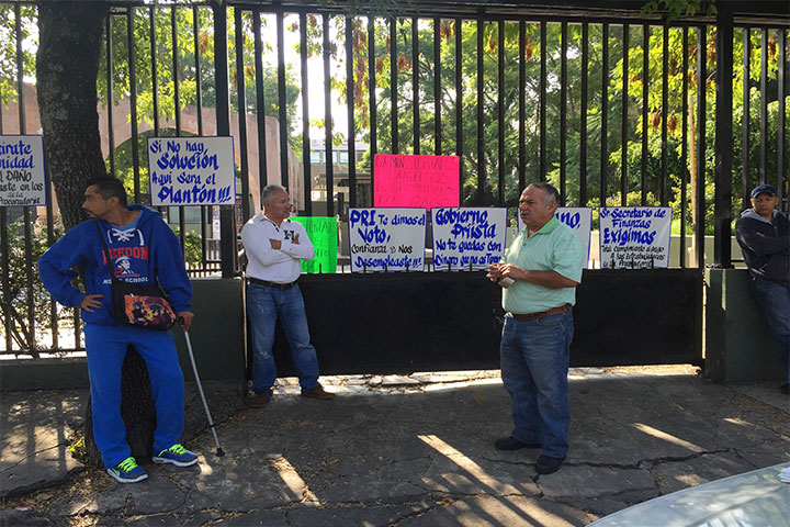Ex policías ministeriales del estado de Michoacán se encuentran manifestando afuera de la Secret...