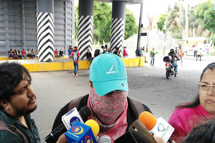 Normalistas con el rostro cubierto se enfrentaron con elementos de la Fuerza Ciudadana, lo que dej...