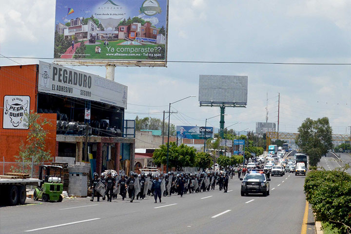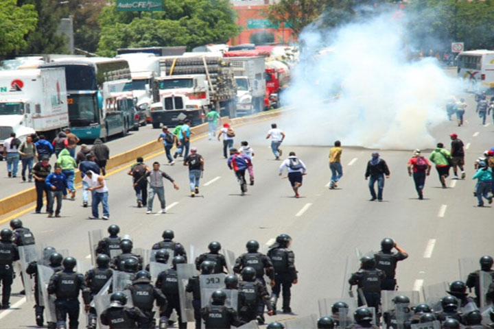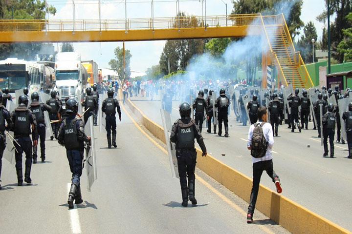 Normalistas y elementos de la policía desataron una auténtica batalla campal en la salida a Salam...