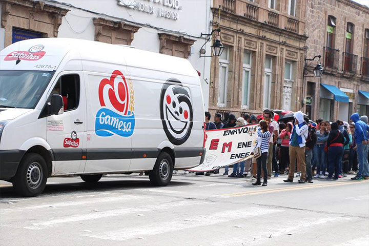 Alumnos de escuelas normales, se manifiestan en la salida Salamanca donde han bloqueado la circula...