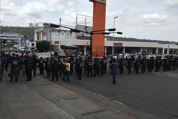 Normalistas protestas en las inmediaciones del Pipila