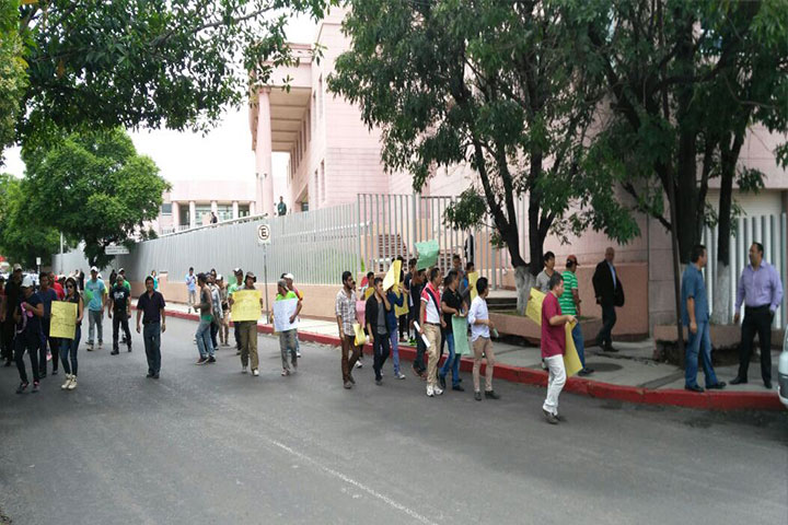 En protesta contra el director Juan Flores Peña, alumnos del turno matutino de la Escuela Secundari...