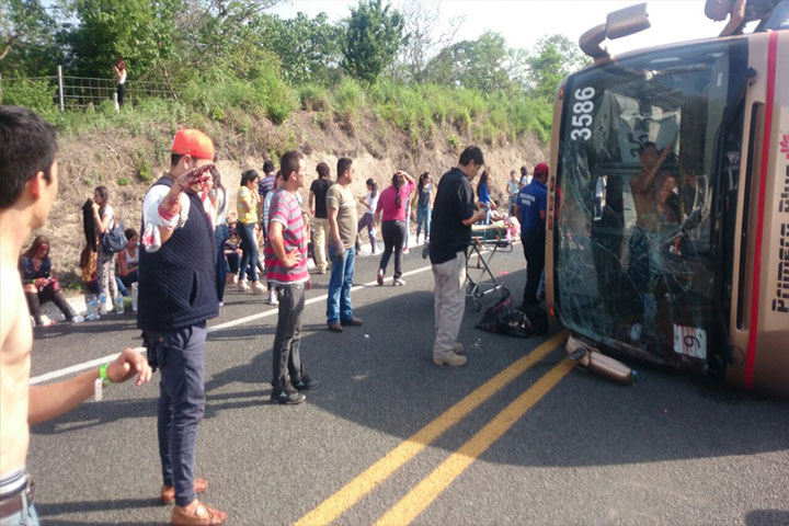 Estudiantes que viajaban en un autobús de la lÃnea Primera Plus se accidentaron sobre la Autopis...