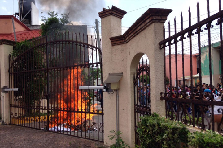 Normalistas queman propaganda electoral afuera del IEM