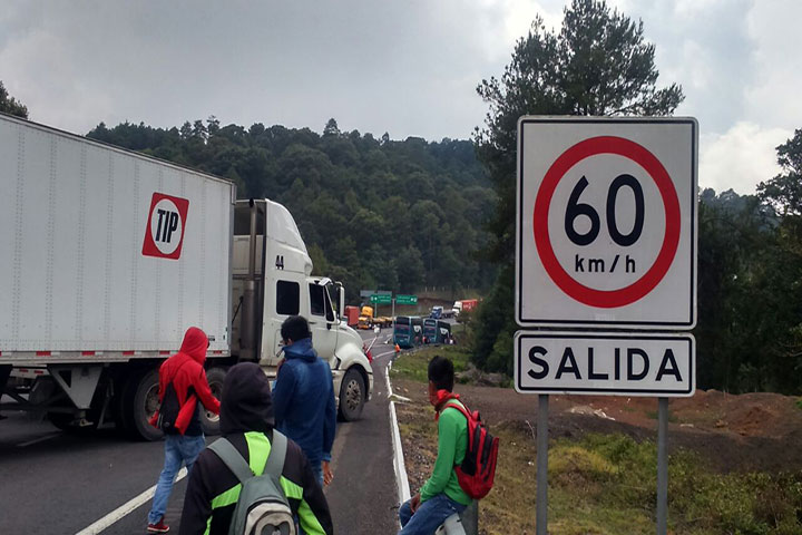 Bloquean normalistas de Cherán la autopista siglo XXI