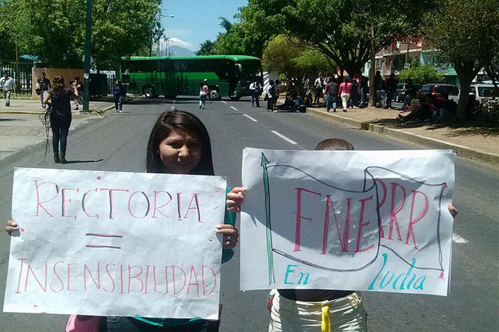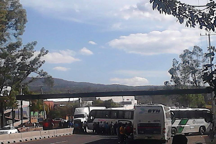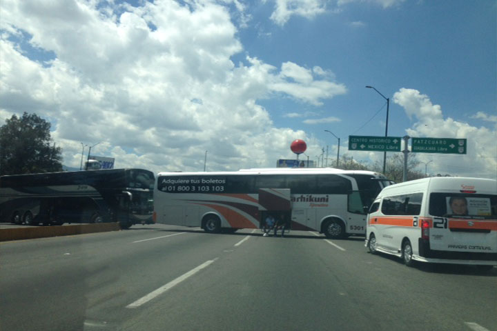 Por enésima ocasión, normalistas se manifiestan en la salida a Pátzcuaro donde han bloqueado el p...