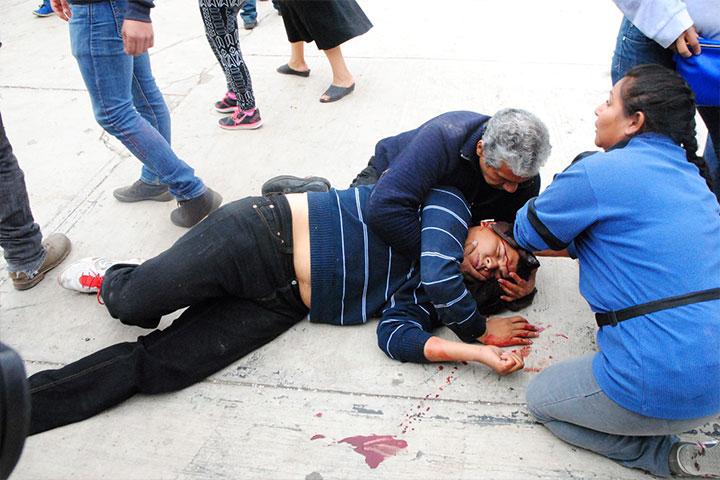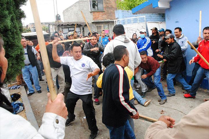 A golpes, palazos, piedras y hasta con mazos, integrantes de la CNTE, de Antorcha Campesina y padres...