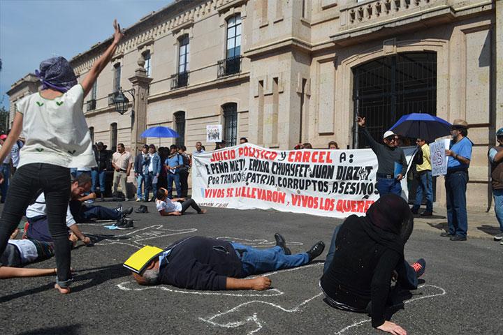Normalistas se manifiestan afuera de Palacio de Gobierno