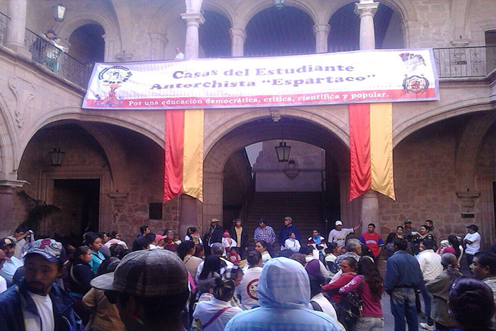 Moradores de la casa del estudiante "Antochista Espartaco", se manifiestan en el Ayuntamiento de Mor...