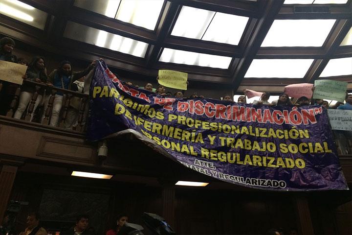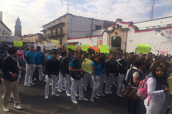 Arribo al Congreso del Estado la manifestación de estudiantes y trabajadores de enfermería de Mich...
