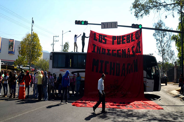 La tarde de este lunes, cerca de 200 estudiantes, entre ellos normalistas, de la Universidad Micho...