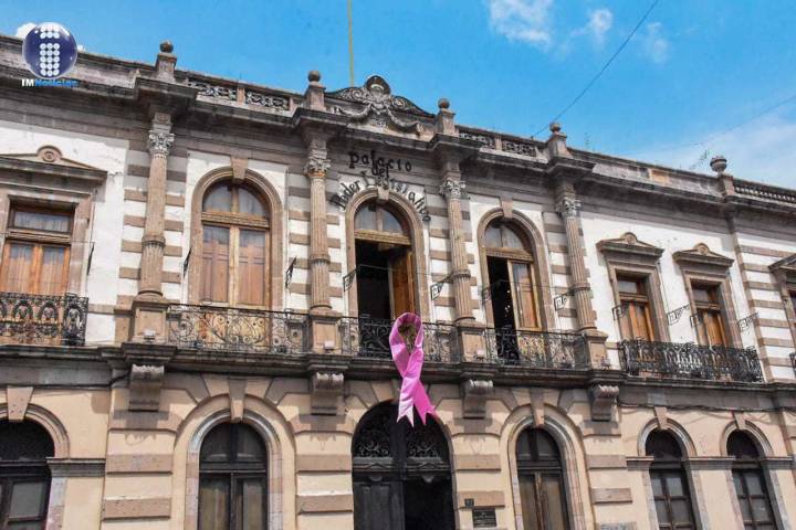 Este día el Congreso del Estado de Michoacán instaló en la fachada de su edificio un moño rosa c...