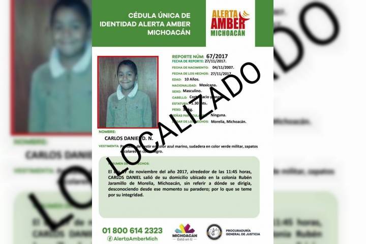 Localiza PGJE a menor reportado desaparecido en Morelia
