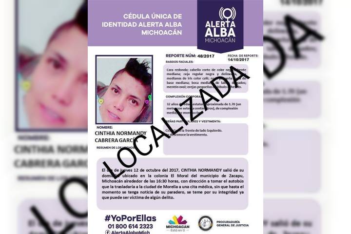 Localiza PGJE a mujer que fue reportada como desaparecida en Zacapu