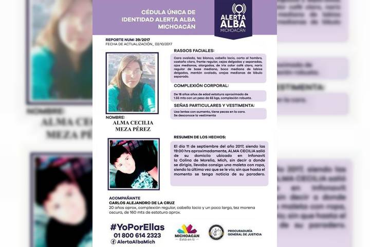Continúa PGJE acciones para localizar a joven reportada como desaparecida, en Morelia