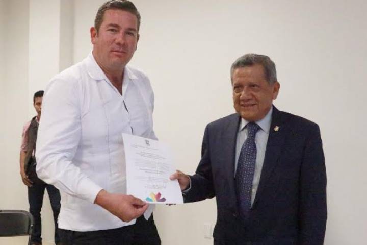 Marco Antonio Flores Negrete, presidente del Poder Judicial de Michoacán, acompañado por los con...