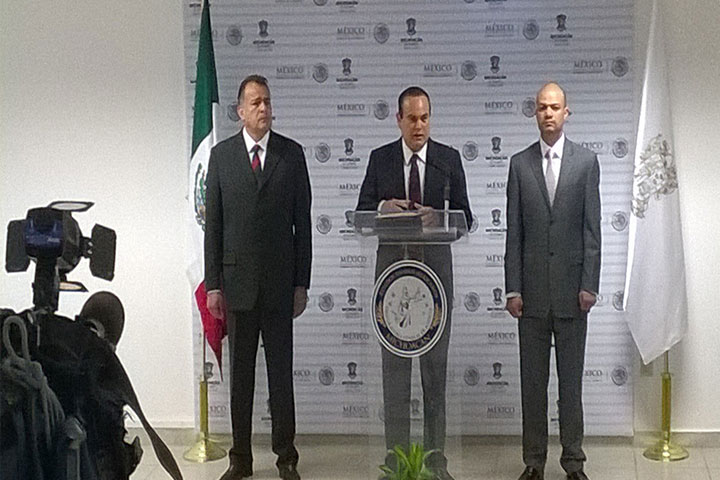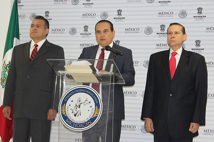 El procurador de Michoacán, José Martin Godoy Castro, dio a conocer, en rueda de prensa ofrecida e...