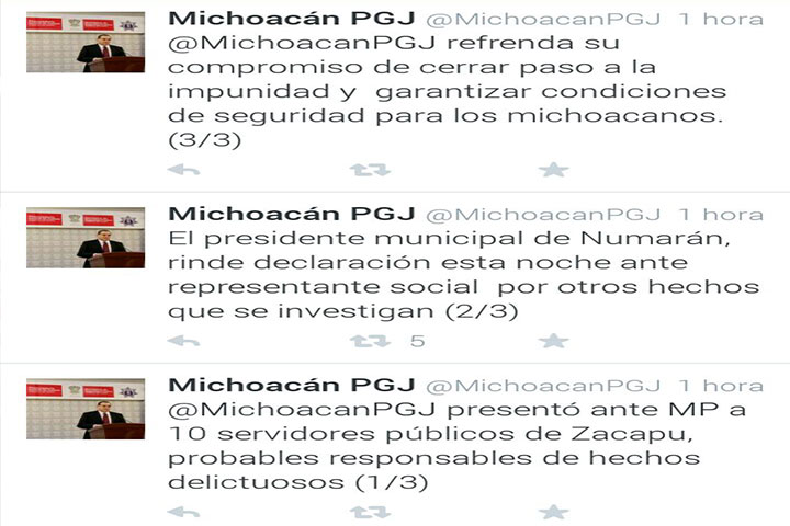A través de su cuenta oficial de twitter, @MichoacanPGJ, el procurador de Michoacán, José MartÃ...
