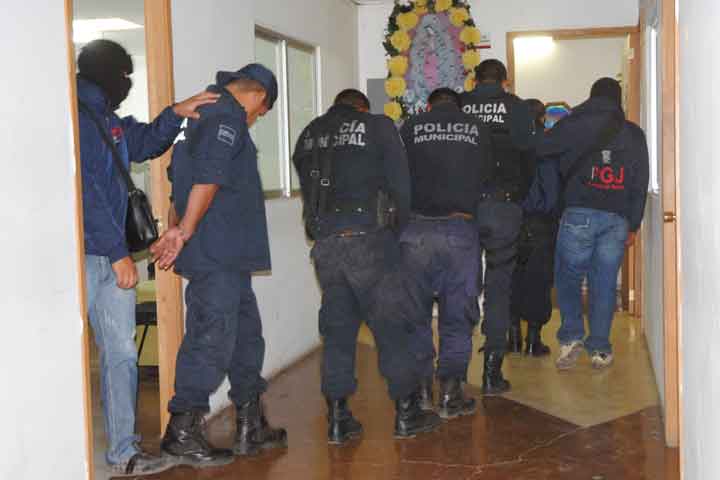 Los 12 policías de Tingambato y los dos civiles que fueron detenidos el pasado martes, acusados de ...