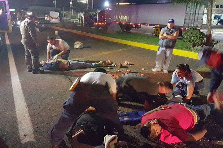 Dos pasajeros de una motocicleta resultaron malheridos al ser impactada su unidad por una camionet...