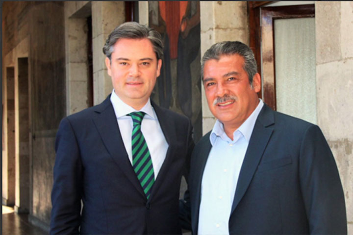 Aurelio Nuño Mayer, secretario de Educación Pública, y el senador Raúl Morón Orozco, secretario...
